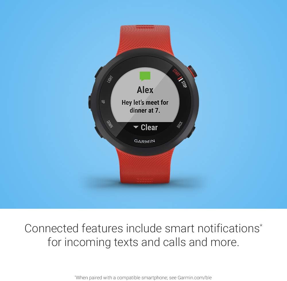 The Forerunner 45S keeps you connected with smart notifications and allows for easy tracking of your runs. It also provides safety features like incident detection, which ensures that you can stay safe and have peace of mind while you’re out running.