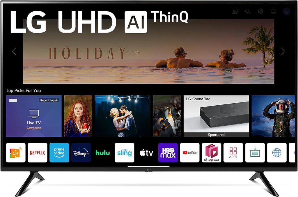 With built-in access to popular streaming platforms like Netflix, Prime Video, Apple TV app, Disney+, and HBO Max, the LG 55-Inch Class UQ7570 Series gives you instant access to an extensive library of movies, TV shows, and sports events. Watch your favorite content hassle-free, without the need for additional devices or subscriptions.
