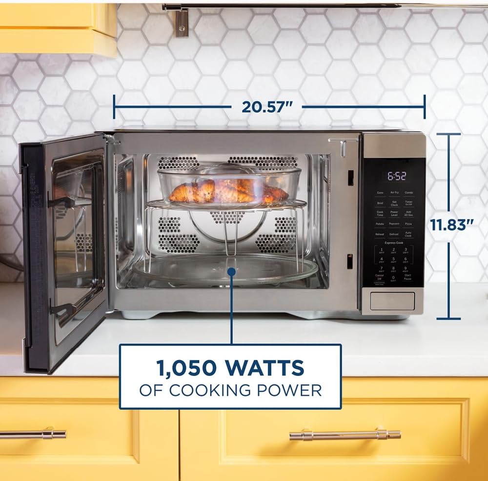 The GE GCST10A1WSS is more than just a microwave; it’s a versatile kitchen essential that combines an air fryer, broiler, and convection oven all in a single, sleek unit. It’s perfect for anyone looking to maximize their kitchen capabilities without taking up excess space, whether you’re in a dorm room, a small kitchen, or just need a powerful appliance for daily cooking.