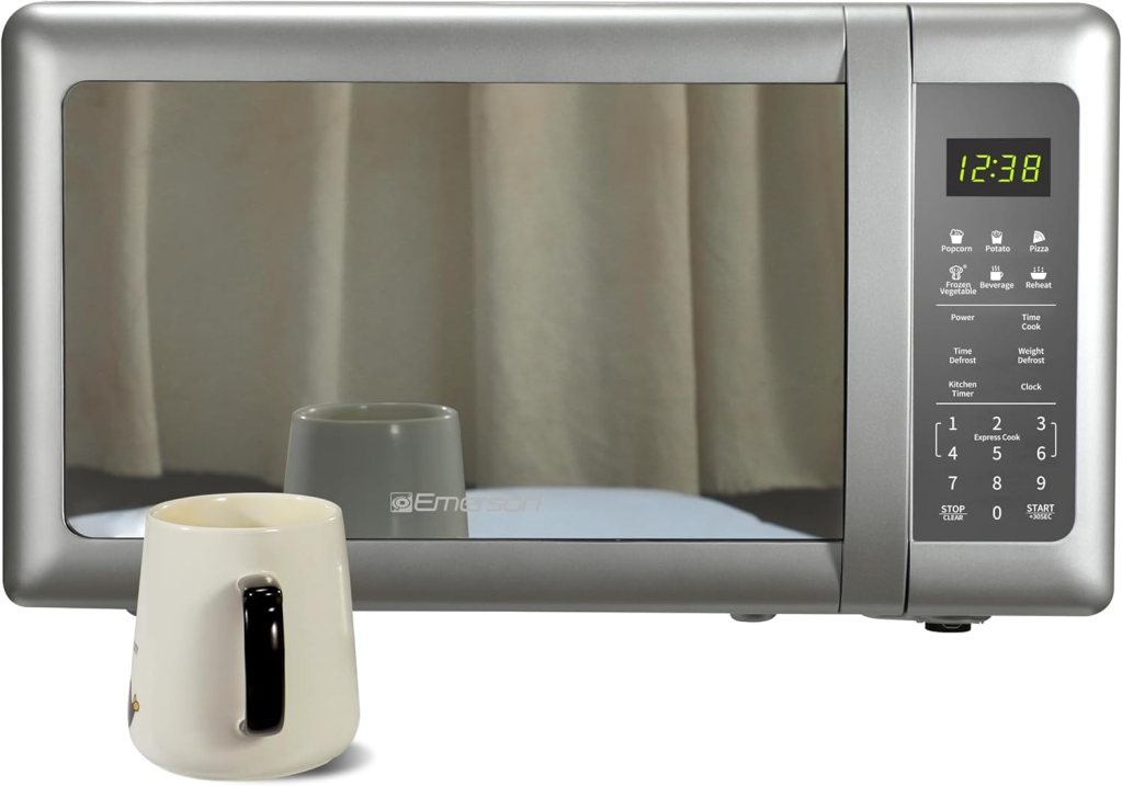 The sleek mirrored finish not only makes the microwave visually appealing but also elevates your kitchen’s overall aesthetic. If you’re someone who loves a modern touch, this microwave’s silver color will complement your appliances beautifully while being easy to clean.