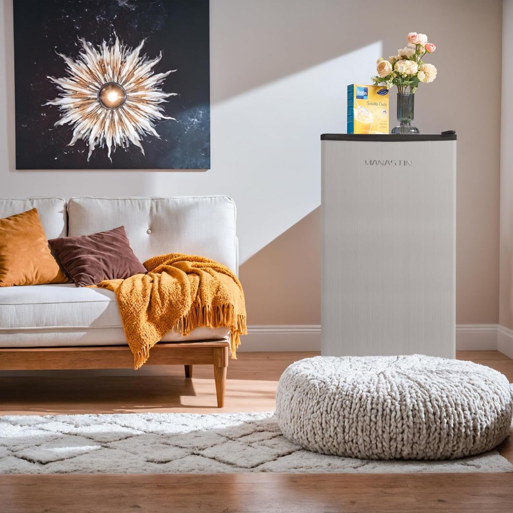 Its sleek, stylish silver design ensures that it pairs well with various décor styles. Whether it’s in your apartment, office, or dormitory, it will add an aesthetic touch while keeping your beverages chilled.