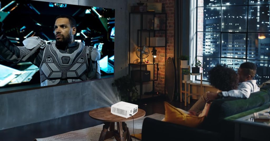 You’ll want this projector if you need a large image in a smaller room without sacrificing brightness. It’s ideal for living rooms, family rooms, classrooms, or casual home theater setups where you want a cinematic feel without a permanent, long-distance ceiling mount.