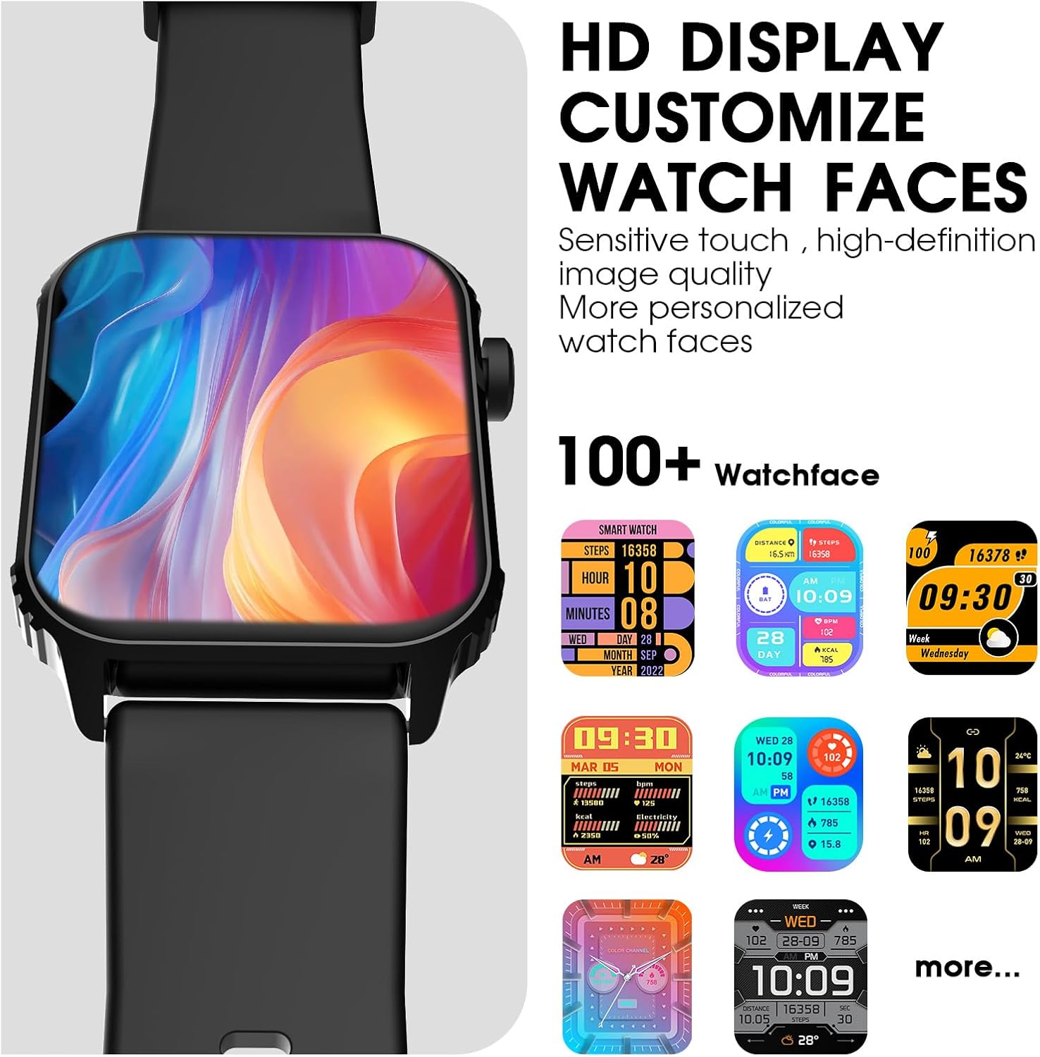 Our smart fitness tracker watch allows us to answer or make calls directly from our wrist. We can connect our Android or iOS phones via Bluetooth and access features such as storing emergency contacts, viewing call history, and receiving notifications from popular apps like Facebook, WhatsApp, and Instagram. With our 1.90″ HD color screen and 200+ DIY dial options, we never have to miss an important message or call again.