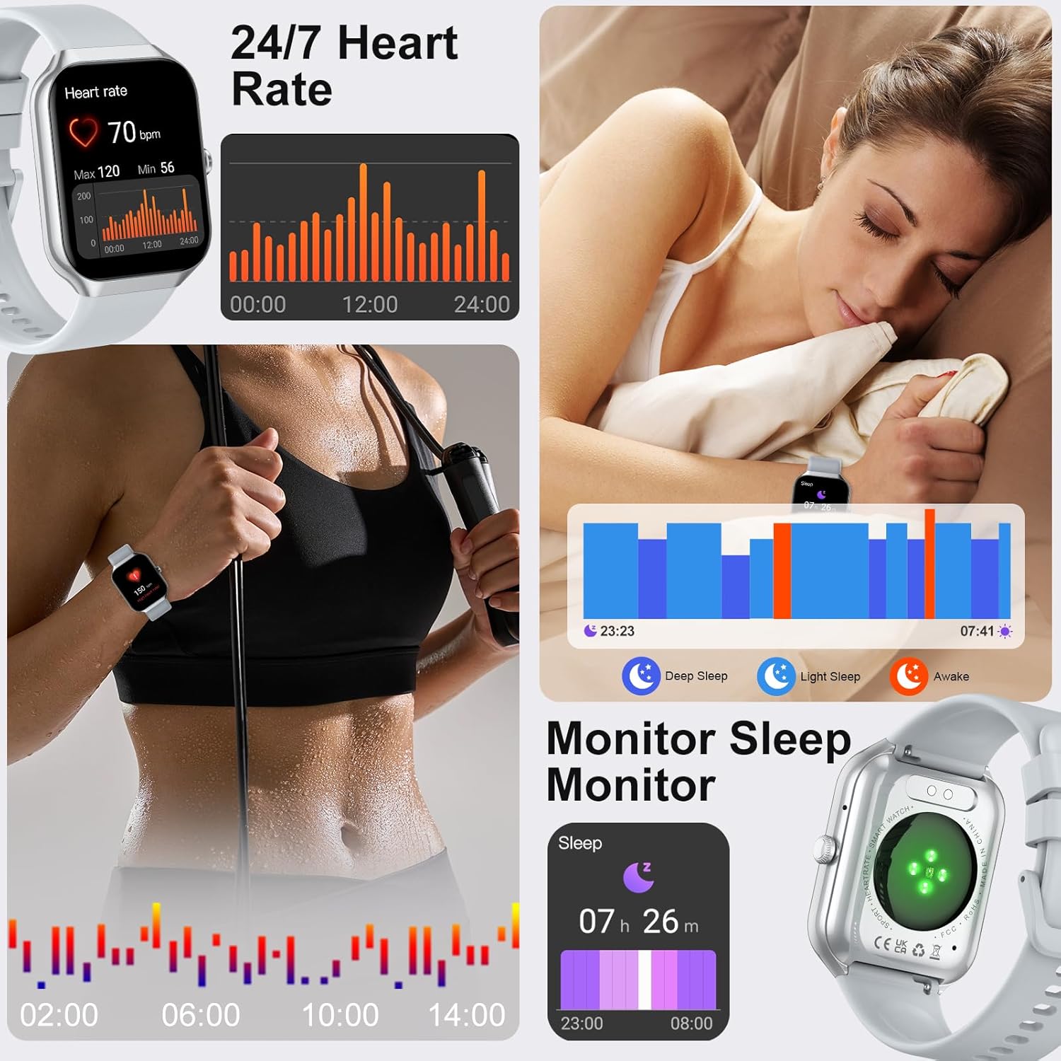 | Health Monitoring | Heart rate, SpO2, Sleep quality |