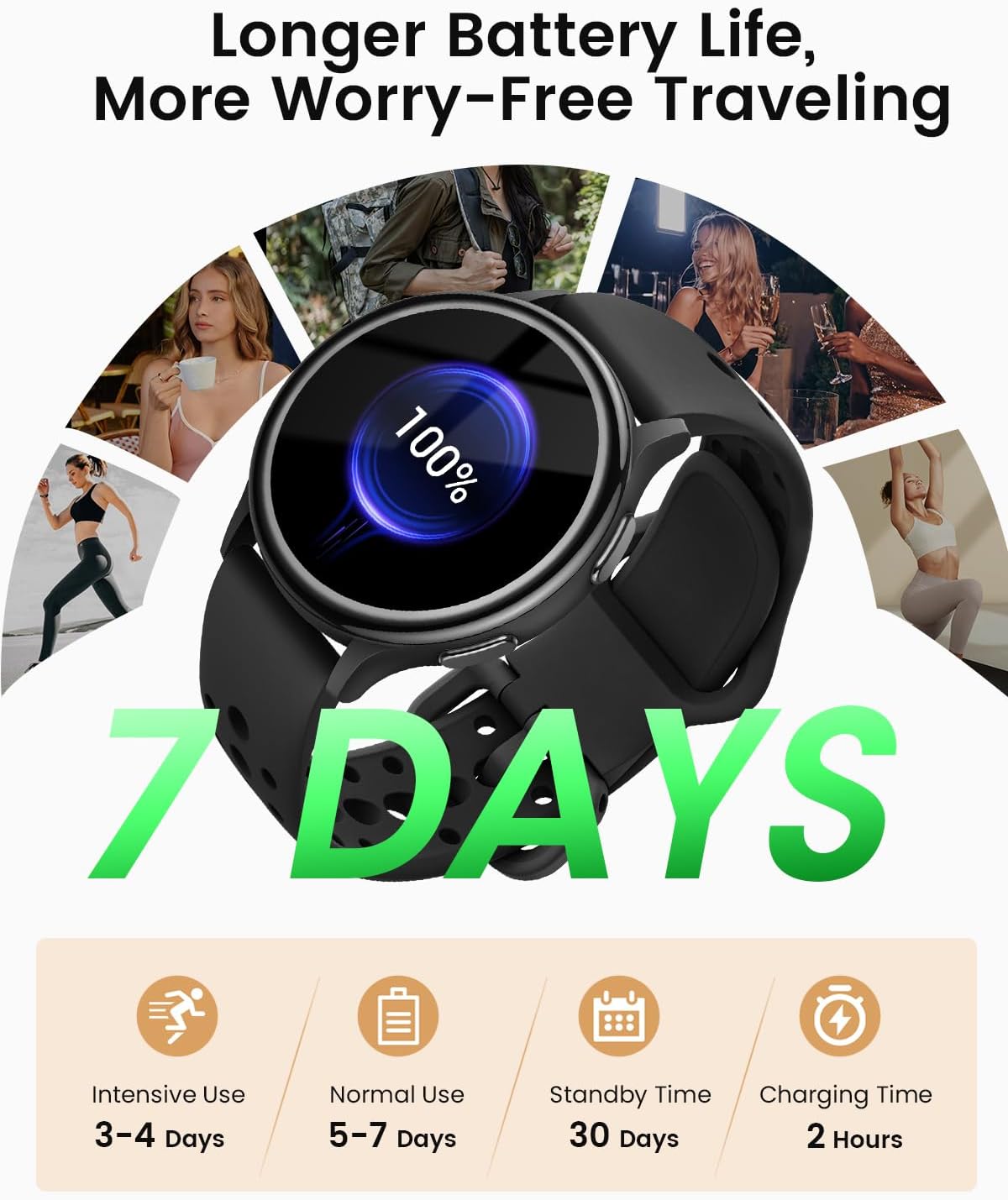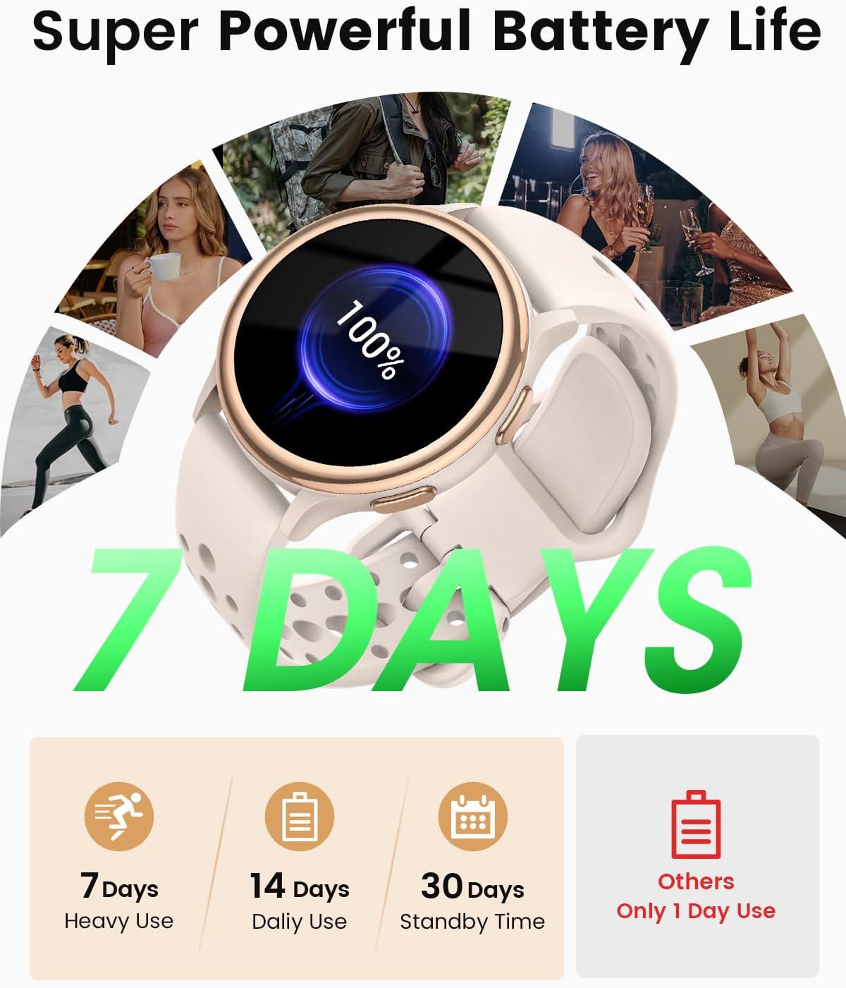 Crafted to keep up with your life, the Smart Watches for Women offer up to 30 days of standby and 14 days of daily use on a single charge. Compatible with Android and iOS, this smartwatch is ready for anything, anytime.