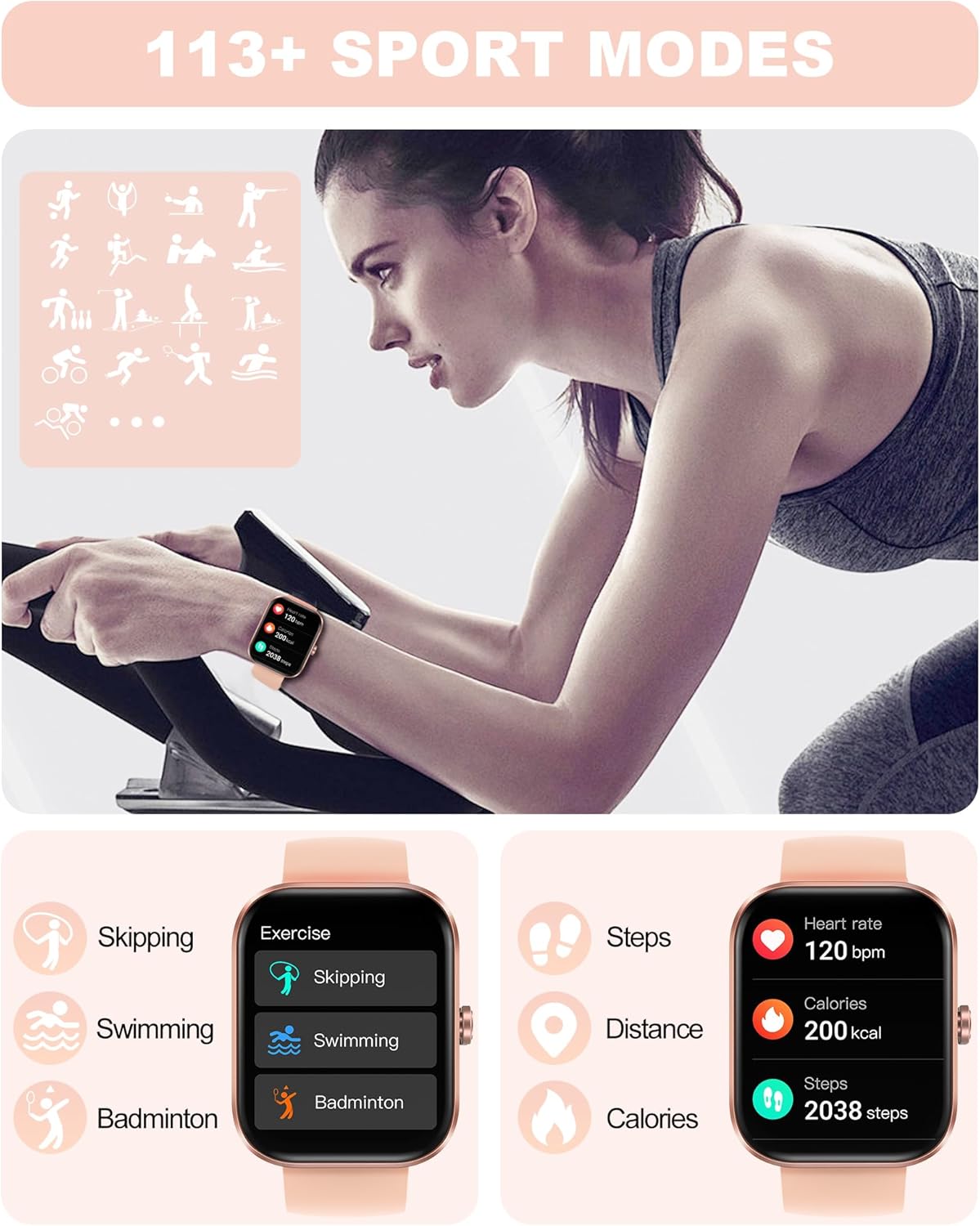 With an IP68 waterproof rating, this smart watch is perfect for everyday wear, allowing you to use it while washing your hands or even swimming. It supports over 113 sports modes, making it ideal for various activities like walking, running, cycling, and soccer.