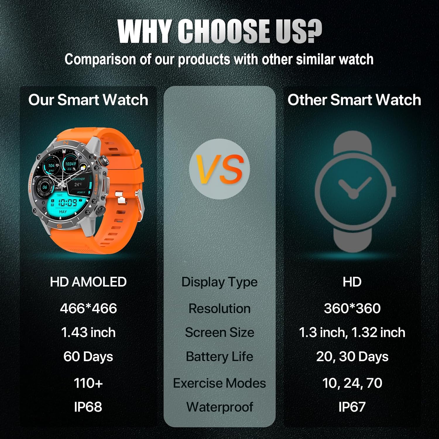 Pairing the M6 Ultra smartwatch with your smartphone is easy with the FitCloudPro app and Bluetooth connectivity. If you have any questions or feedback, our dedicated customer service team is always available to provide prompt and satisfactory solutions. Whether you’re looking for a military smartwatch, tactical smartwatch, or waterproof smartwatch, the WalkerFit M6 Ultra offers the perfect blend of durability, functionality, and style for men on the move. Upgrade your fitness journey with the WalkerFit M6 Ultra smartwatch today!