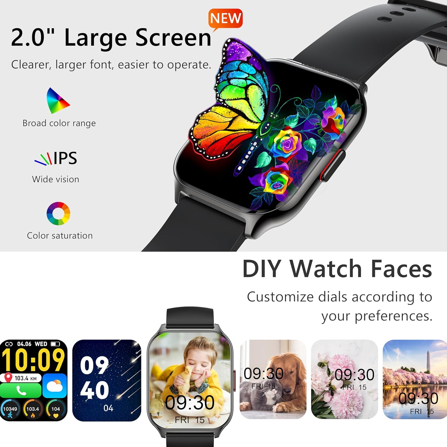 Product Description: Smart Watch for Women Men(Dial/Answer Calls), 2.0″ Fitness Tracker Watch with Heart Rate/Blood Pressure/Blood Oxygen Monitor for Android iOS